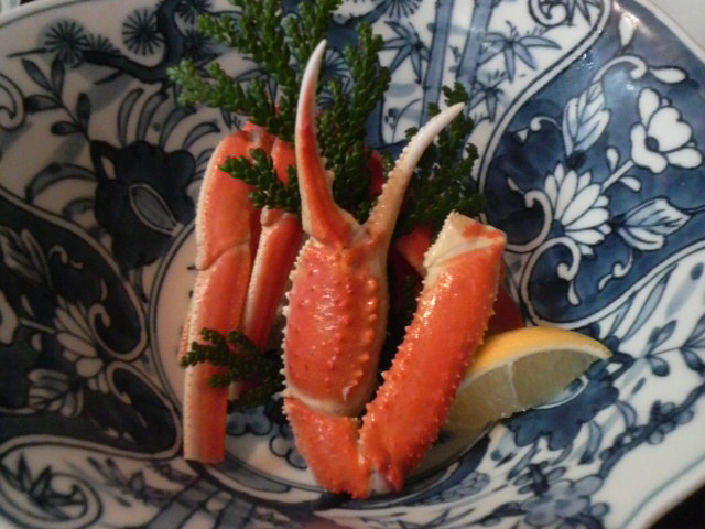 写真左は、能登の名物 『治部煮』、そしてーっ『蟹』です