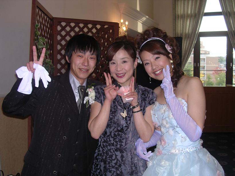 披露宴が終わって、ホッとしたお二人と 仲良く記念撮影を